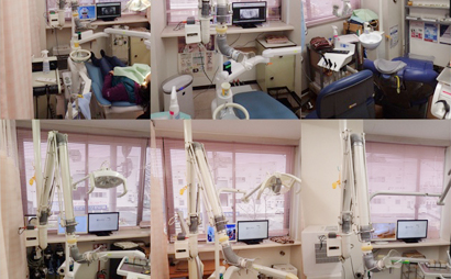 また特診室を作り、ドイツ製の最新式ユニットを増設し、診療室のユニットを6台にしました。体温と同じ温水で歯を削合並びに歯石を除去出来るので、冷水痛が無くなりより診療が快適です。また、歯を削るタービンとモーターの性能が良くなり今まで以上に順短時間で痛みの少ない治療が可能になりました。特診室は説明用のモニターを大型化し、より鮮明で分かりやすい説明が出来るようにしております。