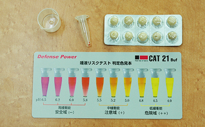 唾液の量、緩衝能(中和する能力)を測定