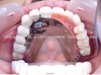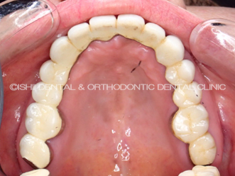 上顎の古い補綴物は全て除去して,咬合再建のため上顎の全ての補綴物を入れ替えました。
