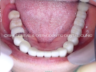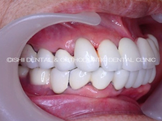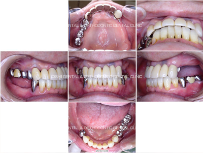なるべく目立たない入れ歯で良く噛める様にしたいという強い希望があり、アタッチメント義歯で全体的に咬合を再構築して咬合再建をしました。