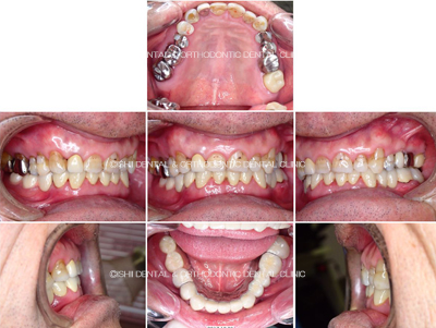 当院では、このような患者様が多く来院してきます。治療にあたっては、噛み合わせを再構築する咬合再建が必要です。